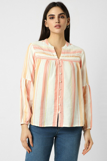 Women Regular Fit Striped Mandarin Collar Casual Shirt