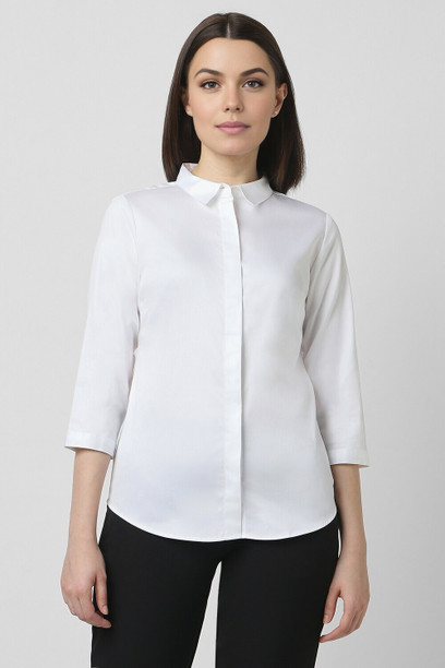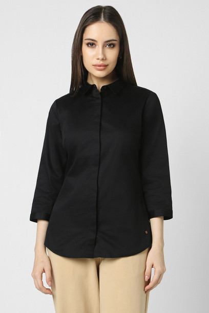 Women Regular Fit Solid Spread Collar Casual Shirt