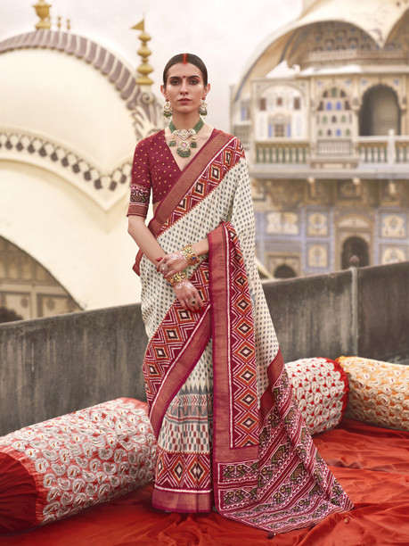 Self Design, Woven, Applique, Printed, Temple Border, S...