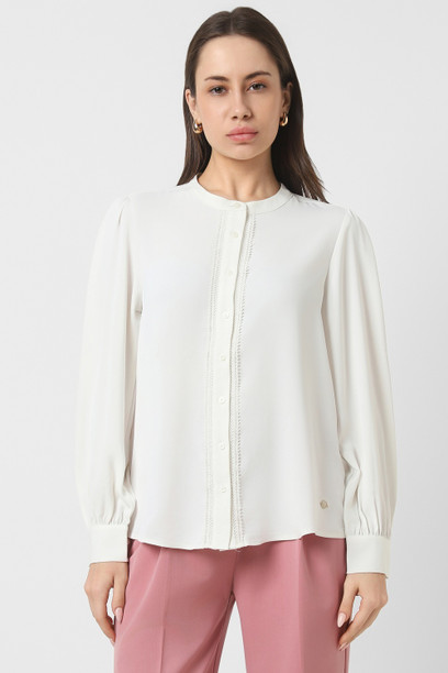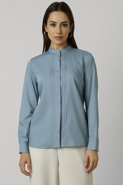 Women Regular Fit Solid Mandarin Collar Formal Shirt