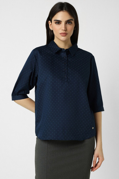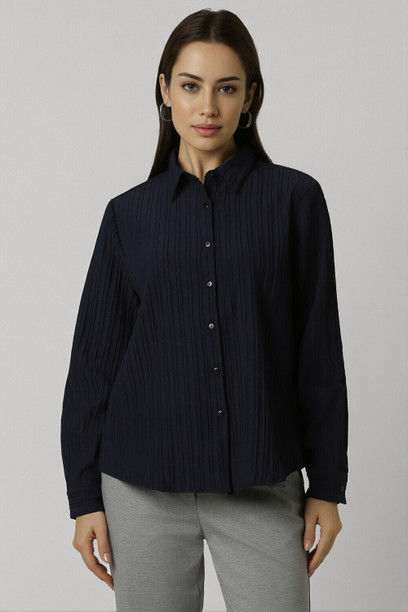 Women Regular Fit Self Design Spread Collar Casual Shir...