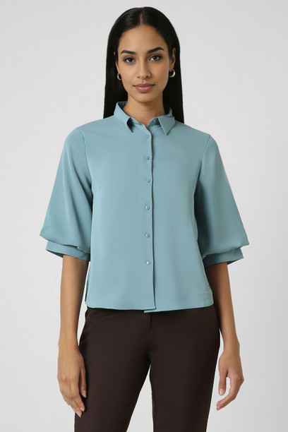 Women Regular Fit Solid Slim Collar Formal Shirt