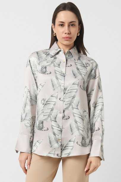 Women Regular Fit Printed Spread Collar Casual Shirt