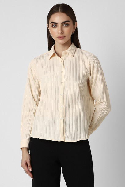 Women Regular Fit Solid Spread Collar Casual Shirt